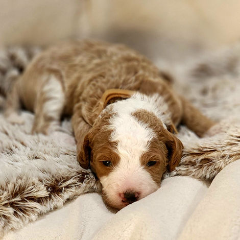 Leather is a 14lb F1B Goldendoodle and Wrigley is a 16lb Multigen Goldendoodle. These fur babies are expected to be 14-16 lbs. 6 Boys born on Thanksgiving Day! These babies will be ready to go home around January 15th, 2024.
